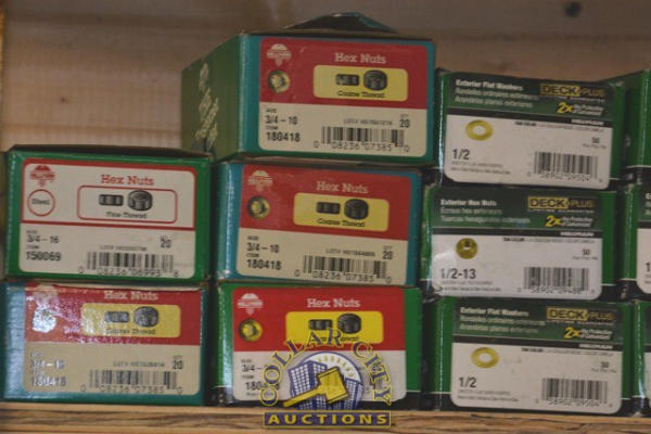 SHELF LOT OF WASHERS AND HEX NUTS