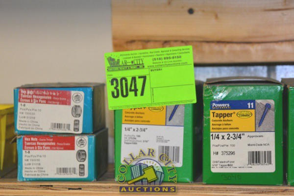 SHELF LOT OF POWER FASTENERS, CONCRETE ANCHORS, NUTS