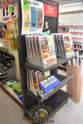 PEGBOARD HOOK STYLE SANDPAPER RACKS AND ALSO INCLUDES BLACK SHELVES AND CONSTRUCTION ADHESIVE RACKS (CANNOT BE REMOVED UNTIL AFTER REGULAR SCHEDULED REMOVAL)