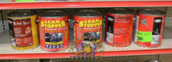 LOT OF 2 GALLONS OF BLACK JACK ALL WEATHER ROOM CEMENT, 2 GALLONS OF LEAK STOP FOR RUBBERIZED ROOF PATCH, 1 GALLON OF BLACK JACK RUBR-SEAL