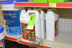 LOT OF 2 GALLONS OF BLACK JACK ROOF GUARD 700, 1 GALLON OF BLACK JACK ULTRA ROOF 1000, 1 GALLON OF BLACK JACK WHITE ROOF PATCH, 1 GALLON OF ALUMA COAT AND 1 GALLON OF BLACK JACK SILVER SEAL 300 AND A ROLL OF SEAM TAPE