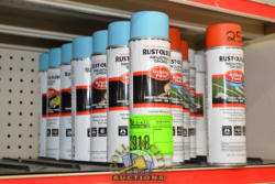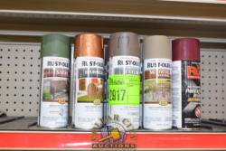SHELF LOT OF 8 OZ CONTAINERS OF RUSTOLEUM PAINTS