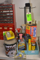 LOT CONSISTING OF PAINTS, CLEANERS, GARBAGE BAGS, CAUTION TAPE