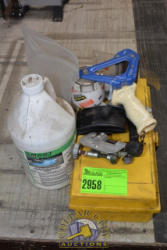 TOOLBOX, TAPE GUN, PIPE CUTTERS, CHLORINATING SOLUTION