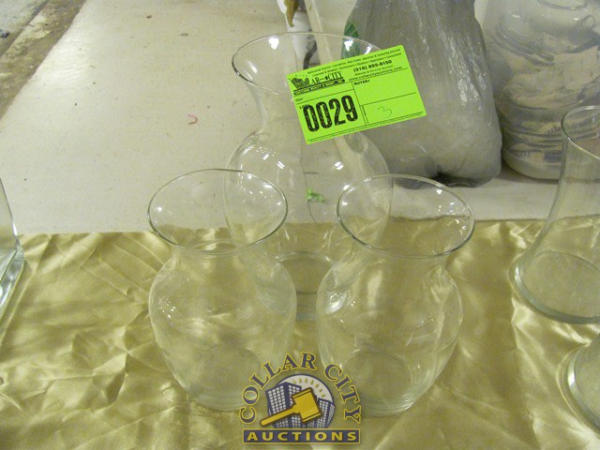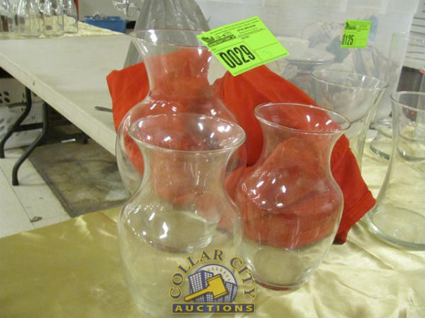 3 - Glass Vases: 1 Lg 12"H, 2 @ 8" H