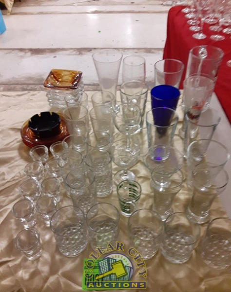 Bar Lot of Ashtrays, bar glasses, shot glasses