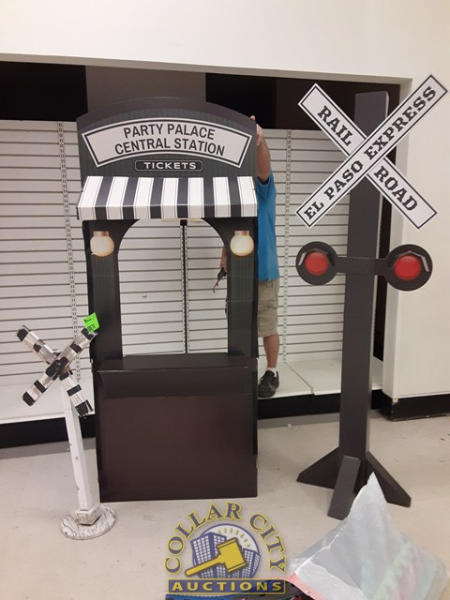 3 Cardboard train ticket booth w/ Railroad crossing