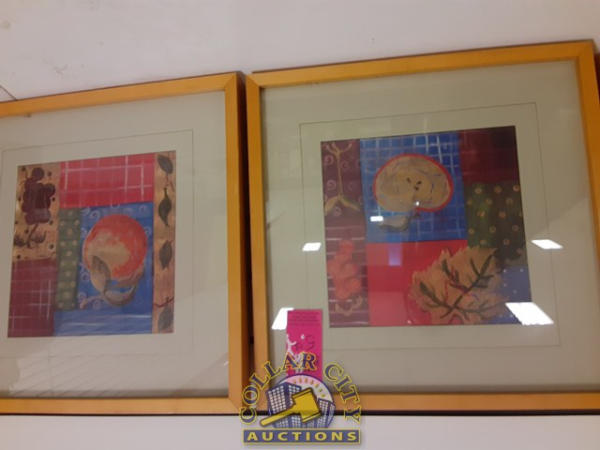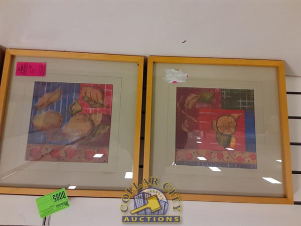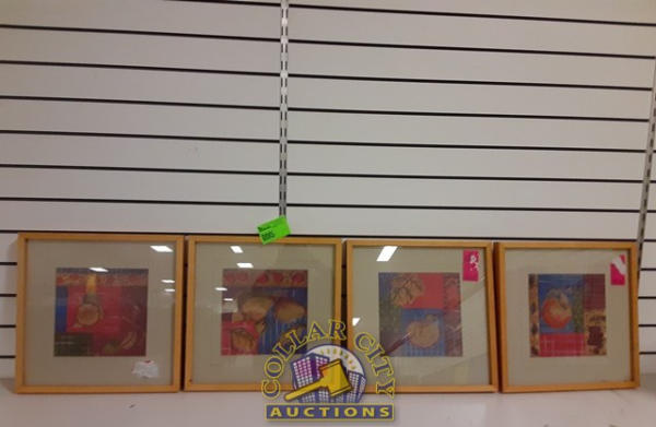 4 framed pictures of fruit.