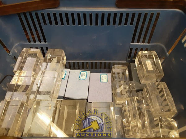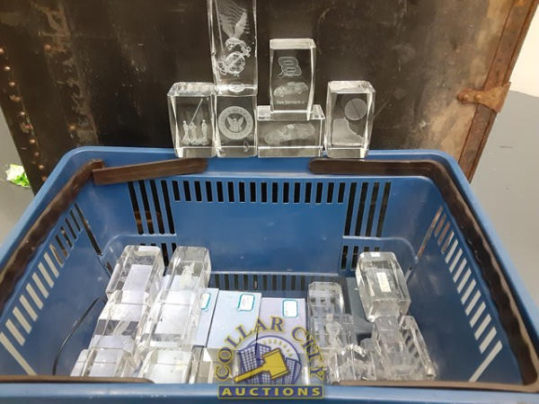 25+/- Assorted Scratch and dent crystals w/ etched designs in center.