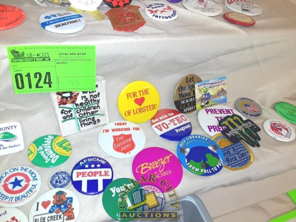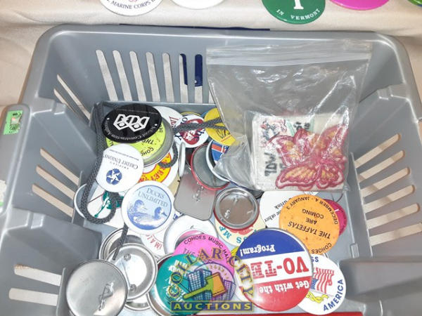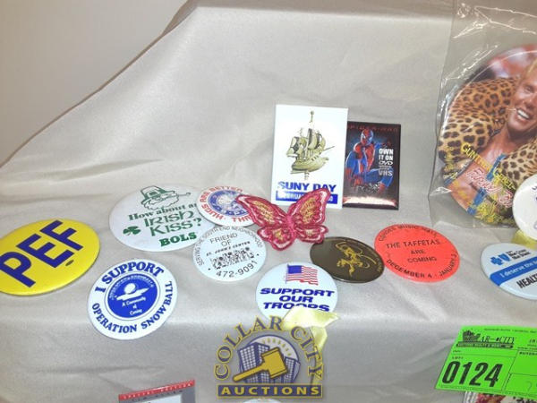75 Assorted pins and patches