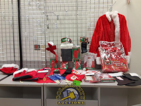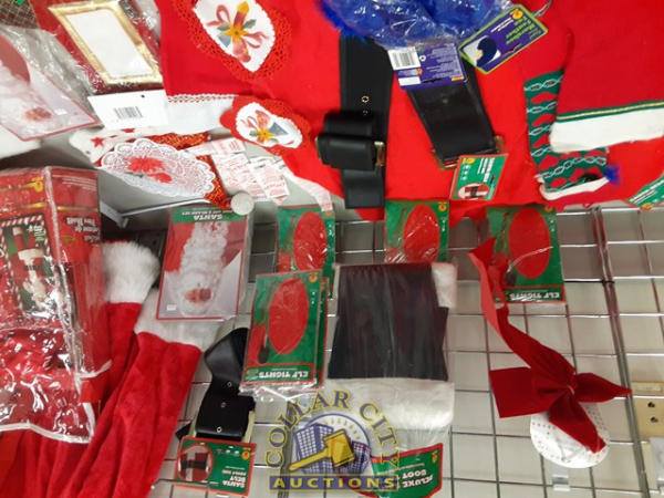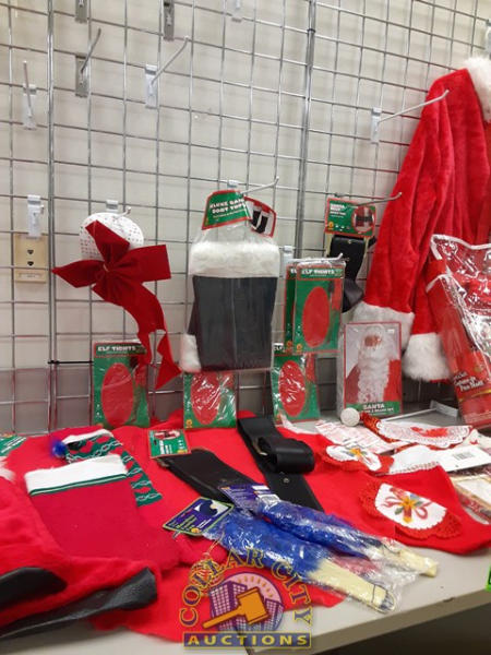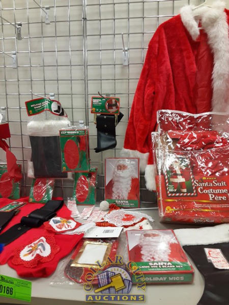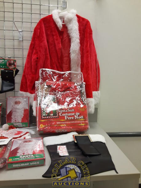Santa costume, boots, hats,doileys, stacking, pic frame, belts, misc. stuff