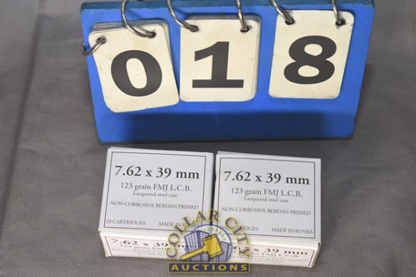 Lot of 2 boxes (40 Cartridges) of 7.62 x 39 mm, 123 Grain, FMJ L.C.B. Ammunition