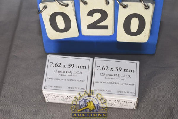 Lot of 2 boxes (40 Cartridges) of 7.62 x 39 mm, 123 Grain, FMJ L.C.B. Ammunition