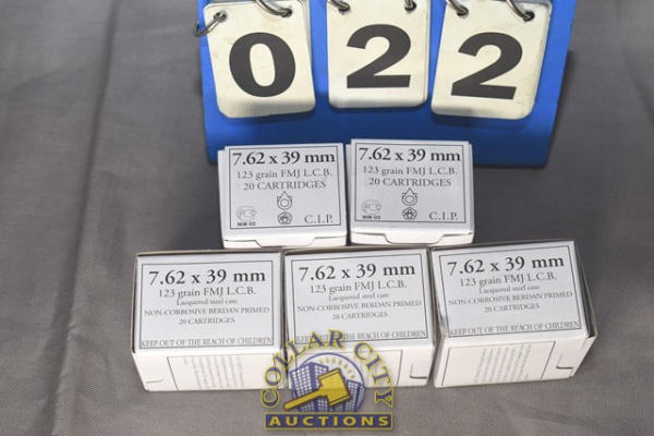 Lot of 5 boxes (100 Cartridges) of 7.62 x 39 mm, 123 Grain, FMJ L.C.B. Ammunition