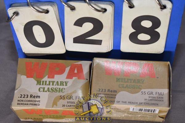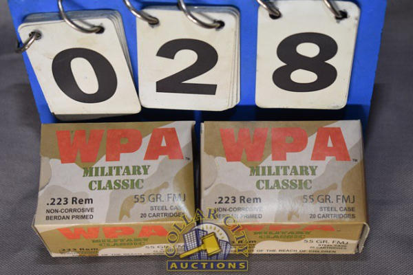 Lot of 2 boxes of 20 Cartridges (40 Cartridges total) of WPA Military Classic .223 Rem, Non-corrosive Berdan Primed, 55 Grain, FMJ Steel Case Cartridges