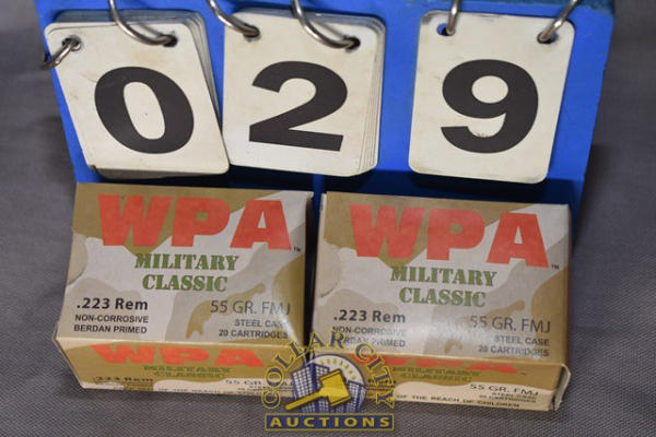 Lot of 2 boxes of 20 Cartridges (40 Cartridges total) of WPA Military Classic .223 Rem, Non-corrosive Berdan Primed, 55 Grain, FMJ Steel Case Cartridges