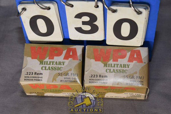 Lot of 2 boxes of 20 Cartridges (40 Cartridges total) of WPA Military Classic .223 Rem, Non-corrosive Berdan Primed, 55 Grain, FMJ Steel Case Cartridges