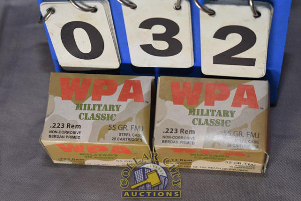 Lot of 2 boxes of 20 Cartridges (40 Cartridges total) of WPA Military Classic .223 Rem, Non-corrosive Berdan Primed, 55 Grain, FMJ Steel Case Cartridges