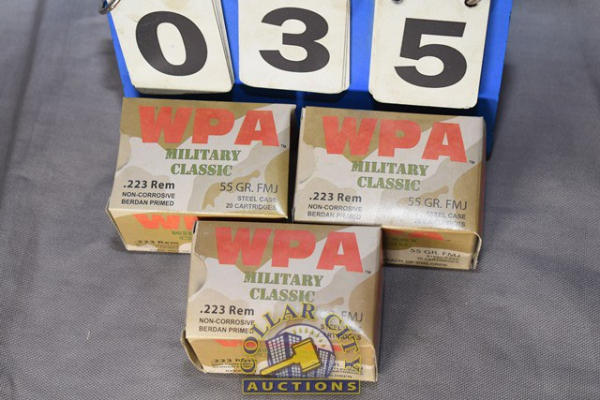Lot of 3 boxes of 20 Cartridges (60 Cartridges total) of WPA Military Classic .223 Rem, Non-corrosive Berdan Primed, 55 Grain, FMJ Steel Case Cartridges