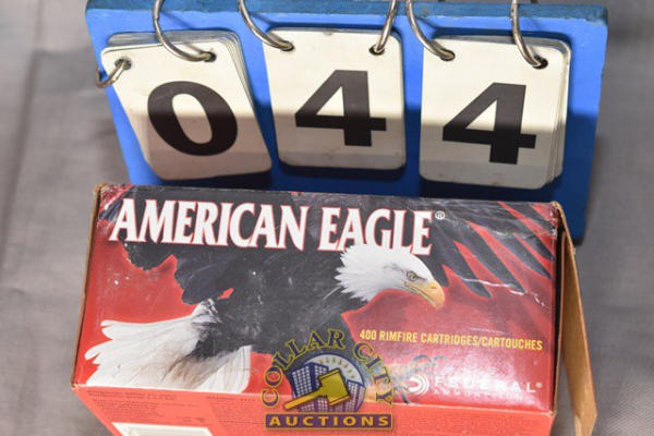 Box of 400 Rim Fire Cartridges, American Eagle High Velocity .22 Caliber Long Rifle, 38 Grain Copper Plated HP
