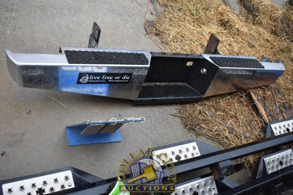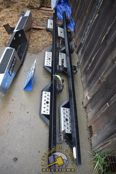Lot of 2 running board (112" long) by Iron Cross Automotive and a rear truck bumper (unsure of what the bumper fits)