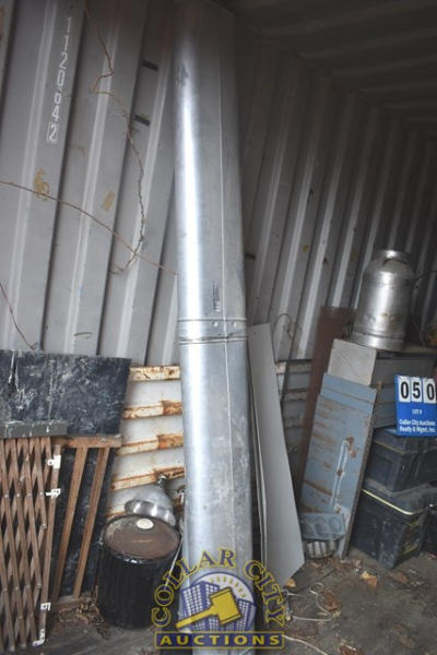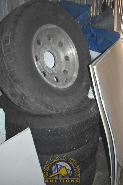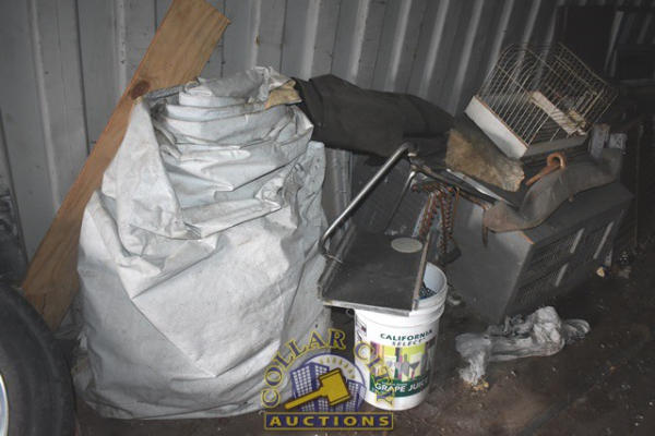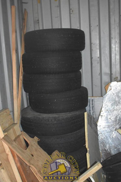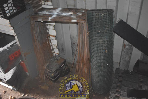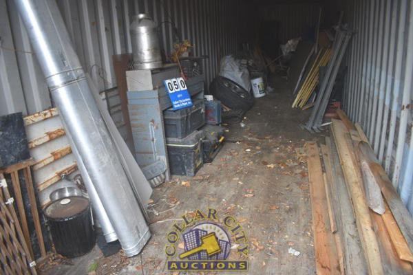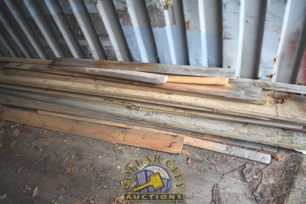 Contents of Conex consisting of assorted lumber, toolboxes, tires, insulation board, metal vents, etc.