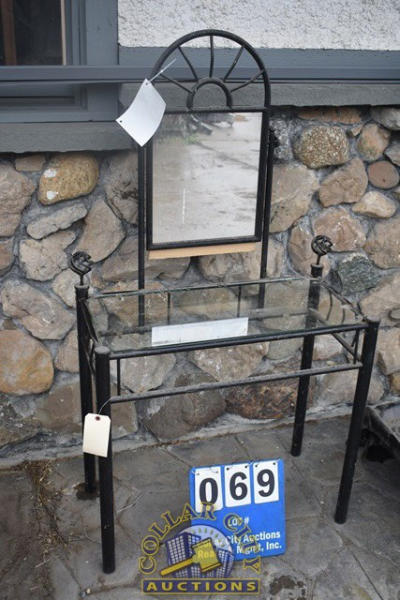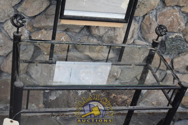 Metal and glass mirror stand, approx. 32" long x 15" wide x 59" tall