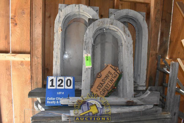 Lot of 3 rounded glass framed windows, approx. 20 3/4" x 38" tall