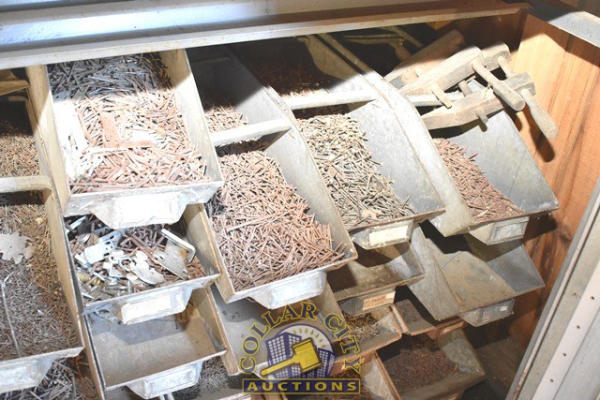 Shelf lot consisting of assorted nails and hardware