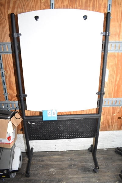 Approx. 31" x 41" white board on approx. 36" x 71" 4-wheeled stand