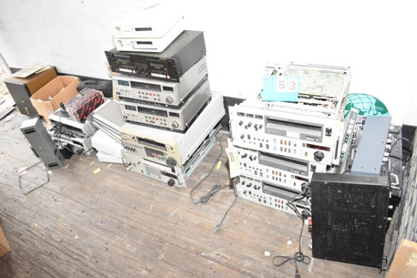 Lot of vintage electronics including Sony Video Cassette Recorders, Panasonic Video Cassette Recorders, IBM 7208-011, Interlink Speaker Recorders, etc.