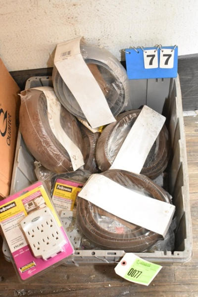 Lot including 6 outlet surge protectors with fax/phone and packs of cord covers