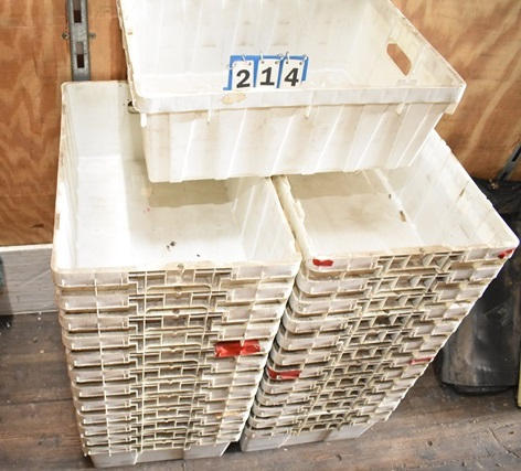 Lot of 25 approx. 15" x 21" x 7 1/2" deep white storage bins