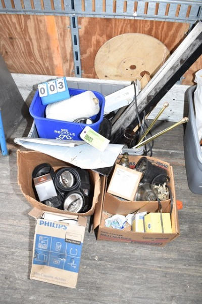Lot of various lighting equipment including bulbs, mini vacuum cleaner, etc.
