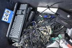 Lot of computer cords and keyboards