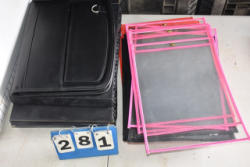 Lot includes various colored, believed to be, menu protectors and 2 small laptop cases