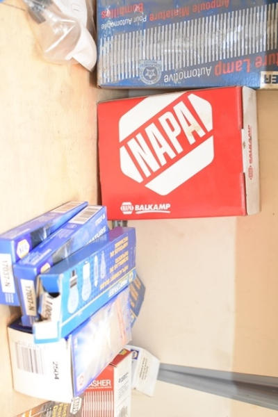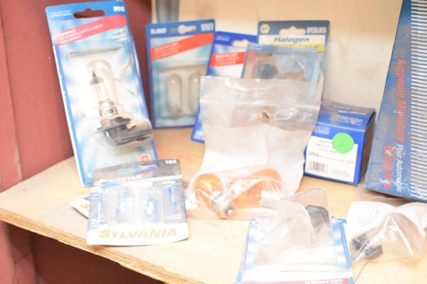 Lot of assorted halogen bulbs, electronic flasher, and assorted automotive miniature lamps