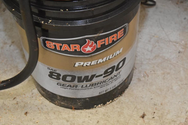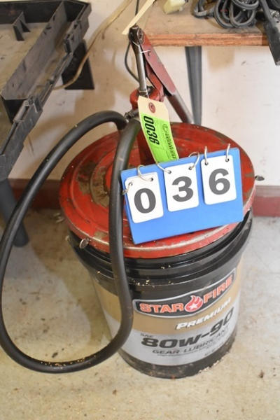 5 gallons of, believed to be 80W-90 gear lubricant with top mount pump