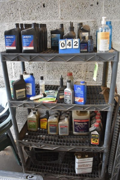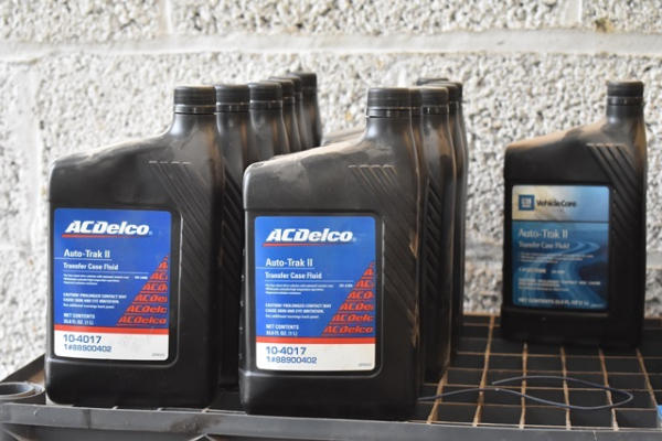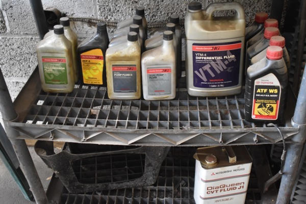 Shelf lot consisting of assorted fluids including transfer case fluid, transmission oil, differential fluid, etc.