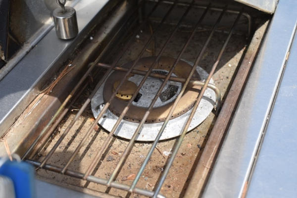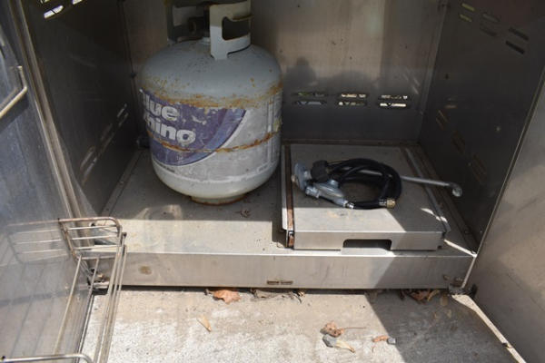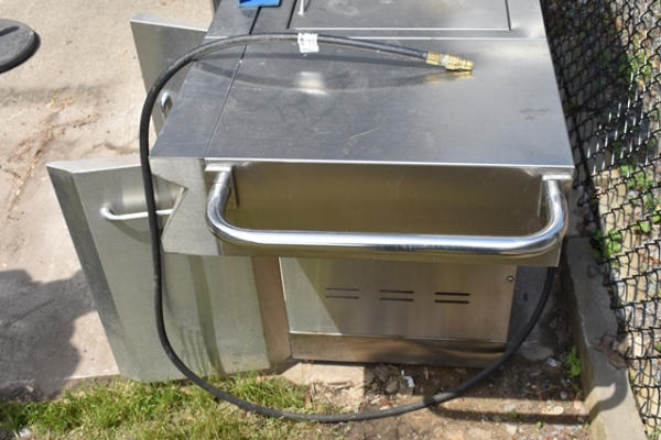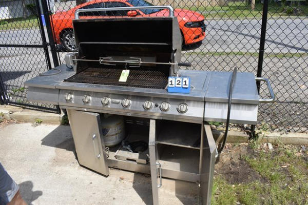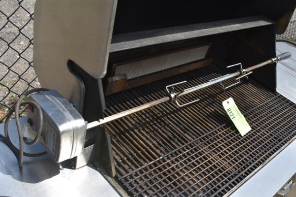 Jenn-air Model 720-0063-LP gas propane grill, 84,000 BTU/hr., 5 burner with rotisserie and a single side burner. Hard lined for an underground propane tank, but does come with kit to change into propane tanks.