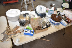 Lot of household items, including bowls, glasses, and assorted kitchen hardware