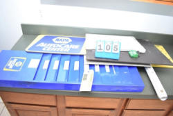Lot consisting of NAPA signs, key hangers, metal paper divider and a dry erase board