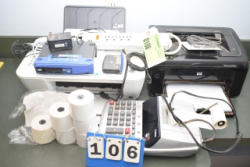 Office lot consisting of printers, calculators, and receipt paper rolls