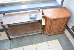 Wooden table and wooden end table with door