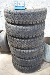 Lot of 6 dually tires. P.F. Goodrich All Terrain, LT235/80R17 on steel wheels of a 2017 Dodge Ram Dually.