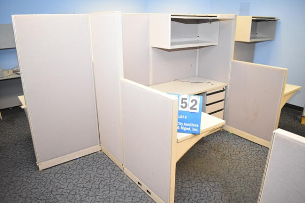 4-unit office set up includes 2 cabinets per bay, approx. 110" x 138" total