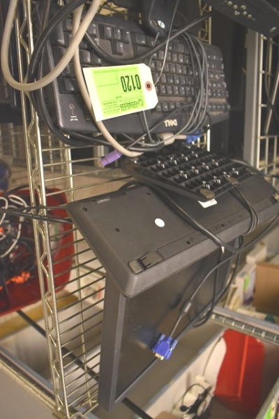 Shelf lot consisting of 2 monitors, 2 keyboards and various cords