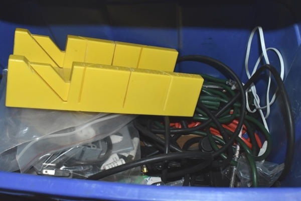 Shelf lot of assorted paint rollers, Great Land Outdoors, lead cords, etc.