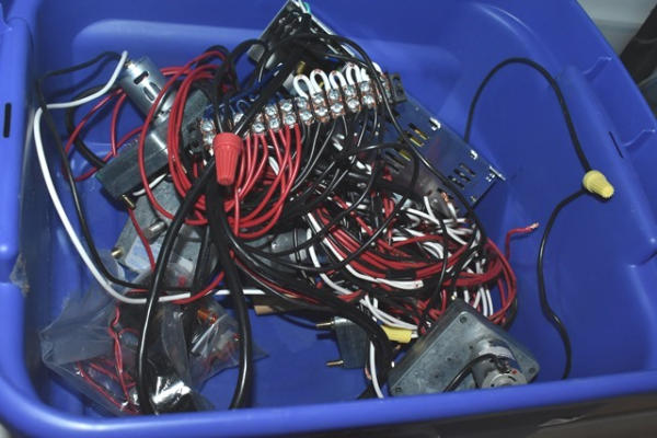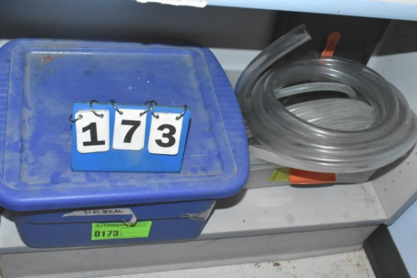 Shelf lot of assorted electrical and clear hose