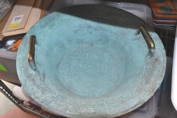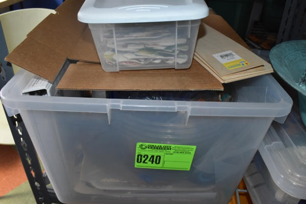 Lot consists of assorted office supplies, table tennis balls, copper dish, etc.